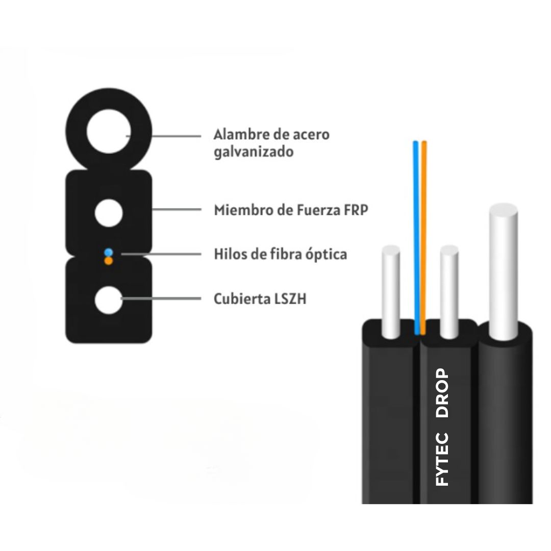 Fytec Drop Cable 1km/ drum G657A2 1core 3 Galvanizados, outdoor.